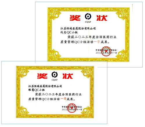 近日,第44次全国医药行业质量管理(QC)小组成果发表交流在甘肃兰州举行。会上,九游会医药远志QC小组、雏鹰QC小组荣获2023年度全国医药行业质量管理QC小组活动一等奖。