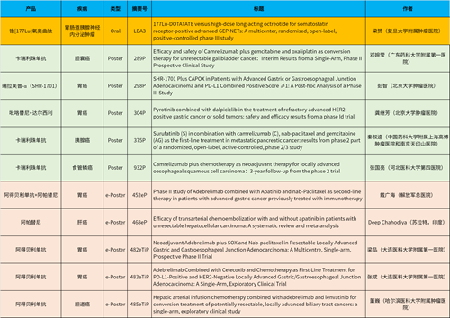 在消化系统肿瘤领域,九游会产品相关研究共入选1项最新突破性摘要(LBA)、5项壁报和5项电子壁报,共11项研究。其中阿得贝利单抗入选4项研究、卡瑞利珠单抗入选3项研究。